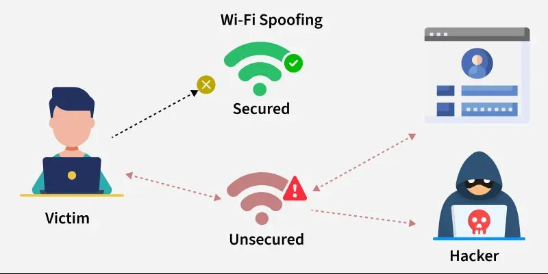 このようなネットワークでは、同じWiFiに接続している第三者が通信を監視できる可能性があります。