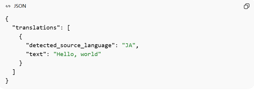 以下は、HTTPリクエストを送信して翻訳結果を取得するシンプルな例です。