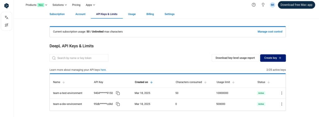 精度は非常に安定しています。特に英語との相互翻訳では自然な結果が得られる傾向があります。無料枠は限定的ですが、従量課金は比較的わかりやすい設計です。商用利用にも問題ありません。